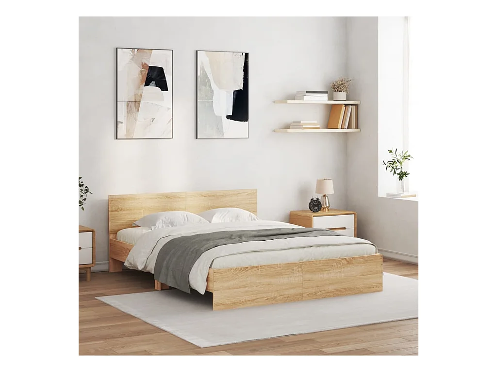 Lit-140x190 cm + tête de lit chêne sonoma HOQW97596