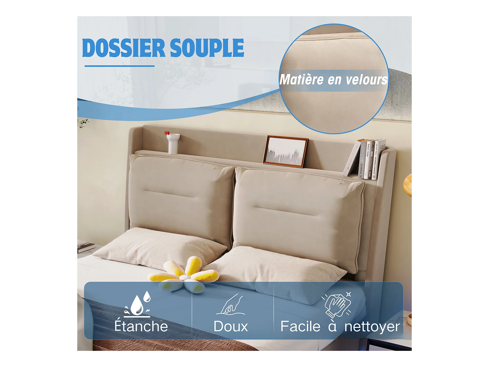 Lit coffre 140x190cm en velours avec sommier à lattes - beige