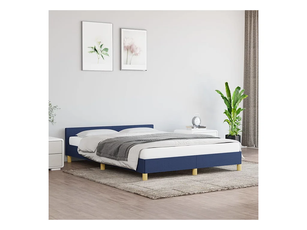 Cadre de lit sans matelas bleu 140x200 cm tissu