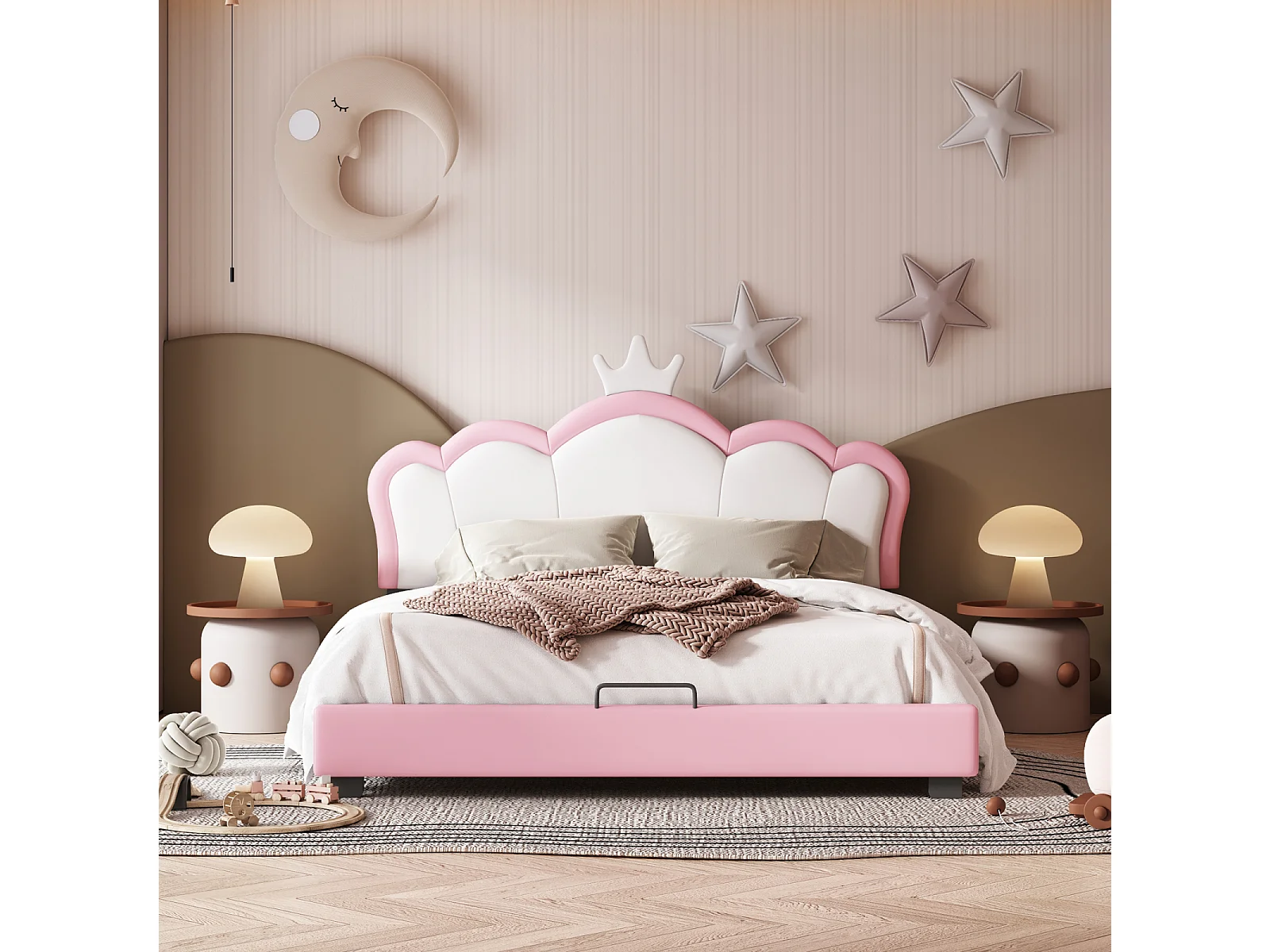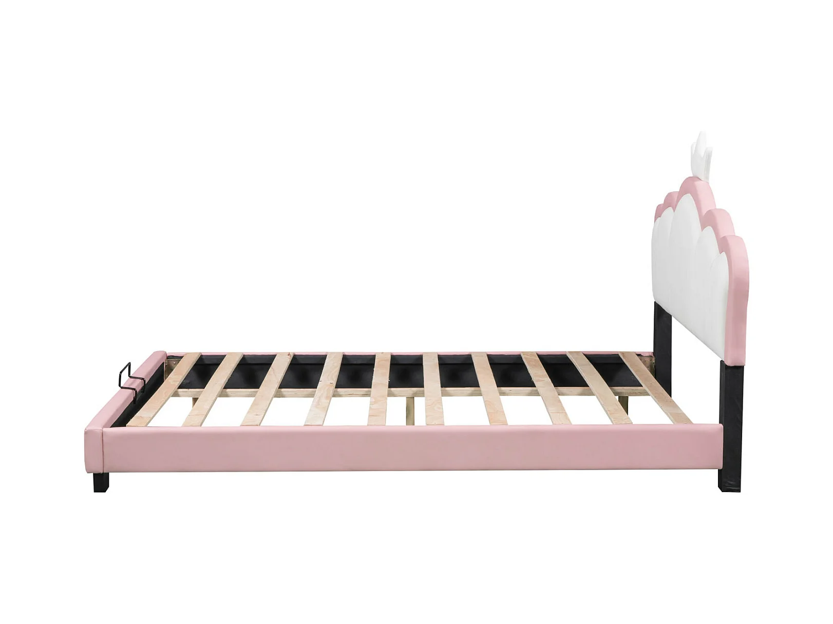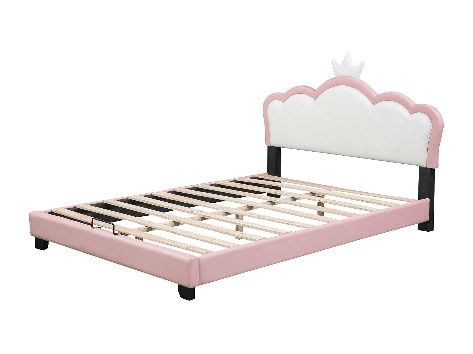 Lit 140x200cm - Lit d'Enfant avec Tête de Lit en Forme de couronne + Sommier à Lattes - Rose