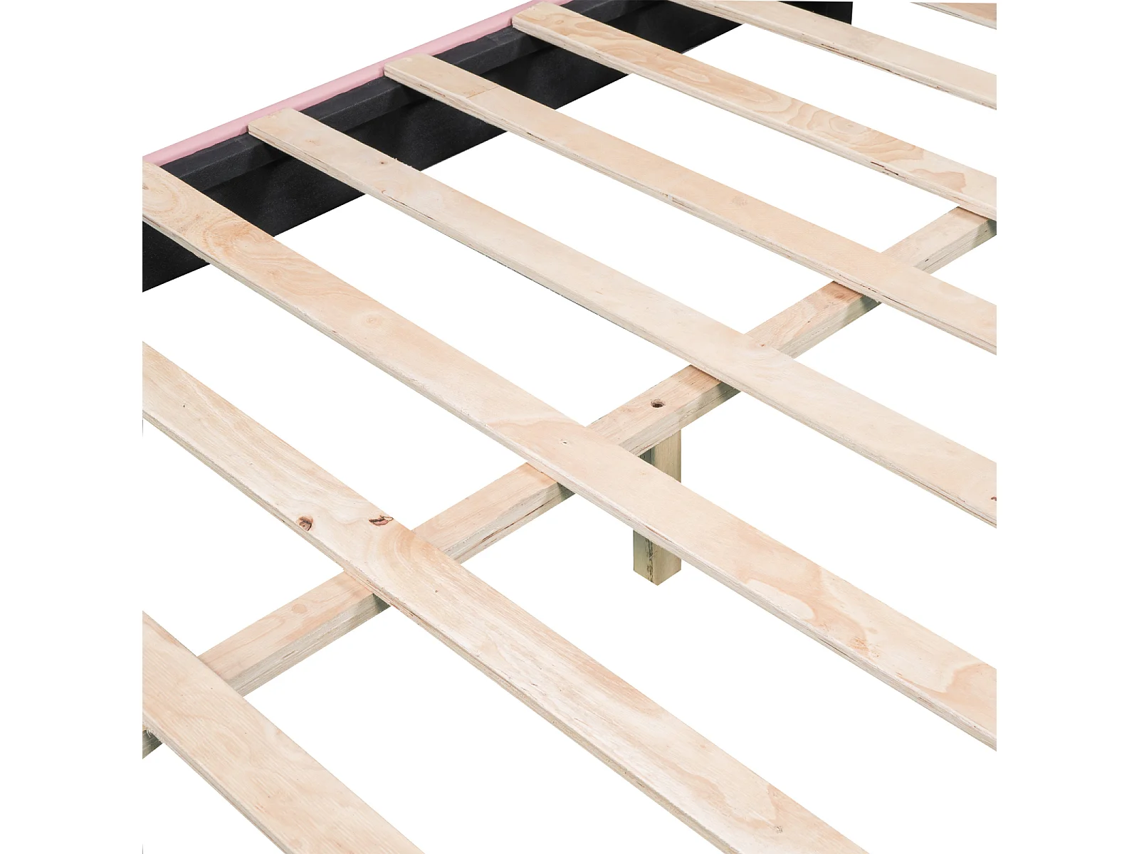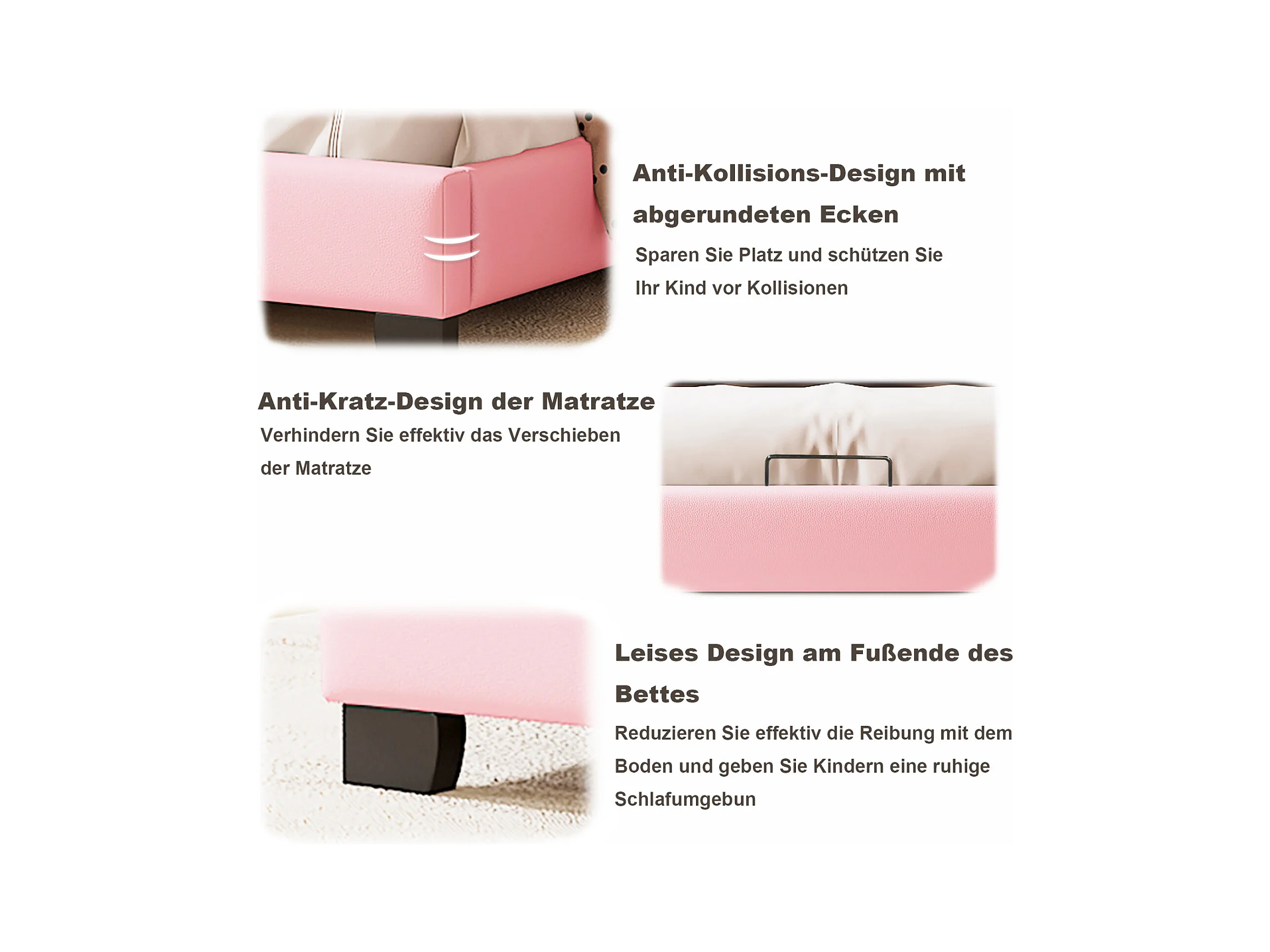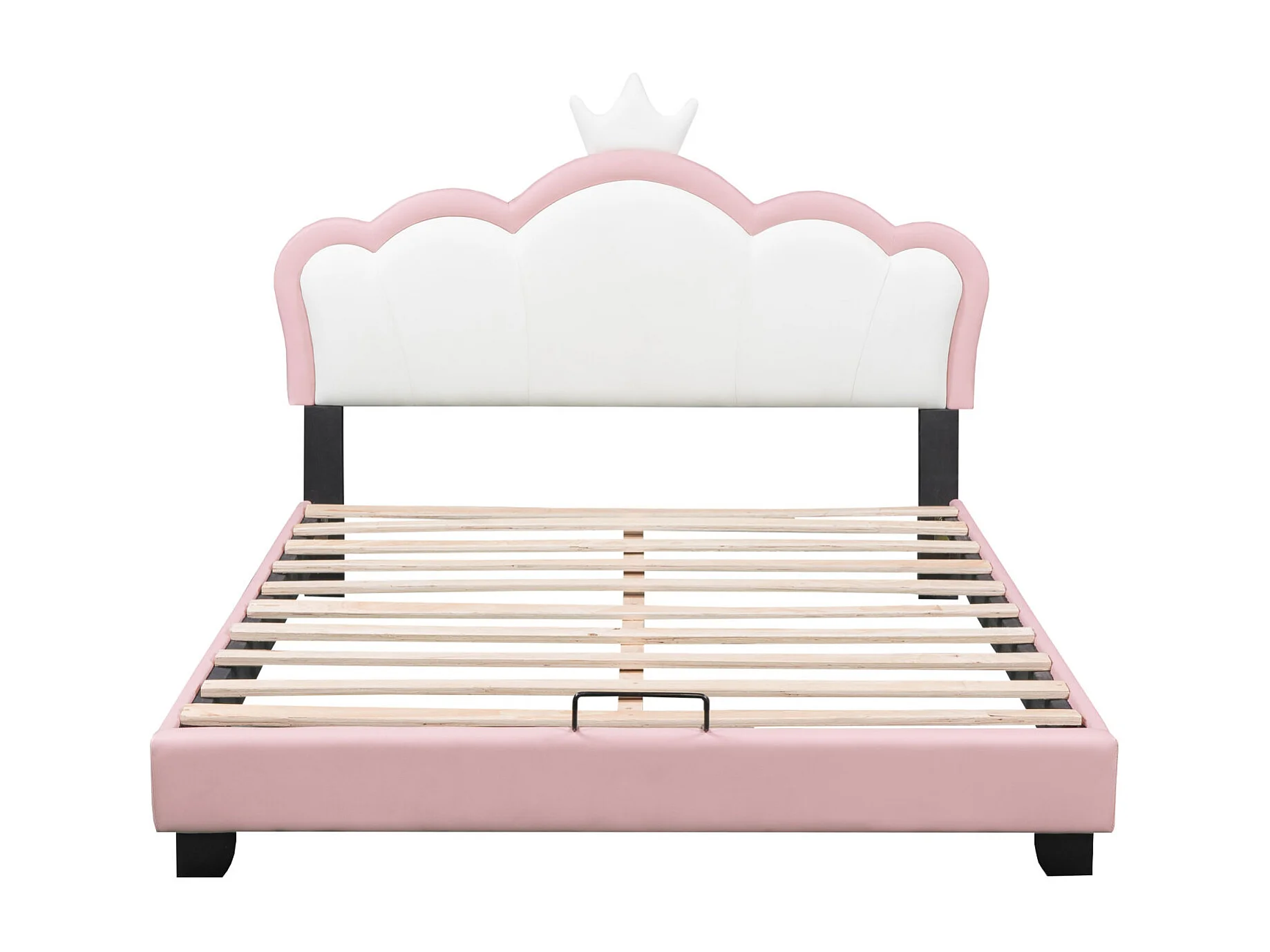 Lit 140x200cm - Lit d'Enfant avec Tête de Lit en Forme de couronne + Sommier à Lattes - Rose