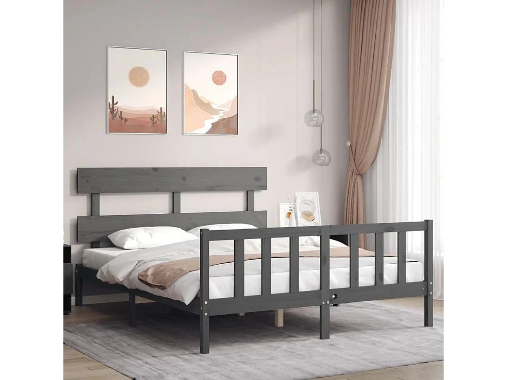 Lit-150x200 cm avec tête de lit gris King Size bois massif EGGB41246