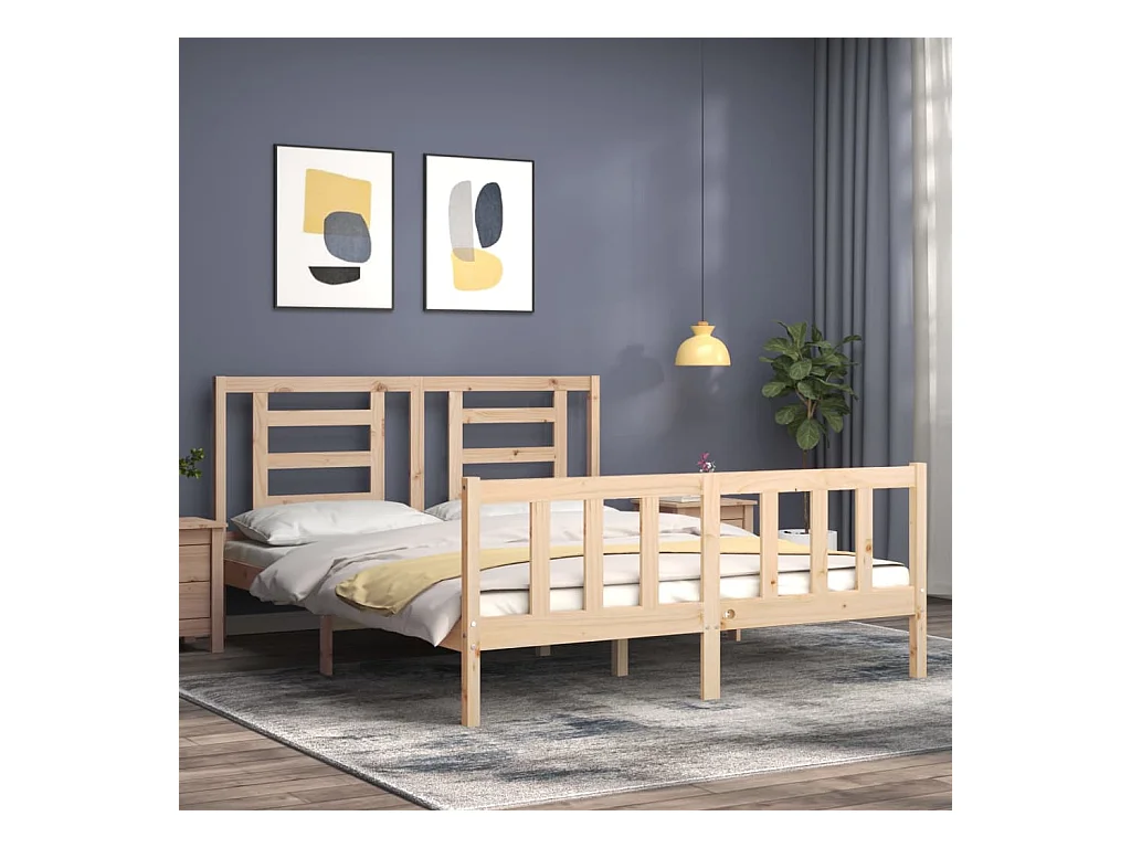 Lit-150x200 cm avec tête de lit king size bois massif EGGB91846