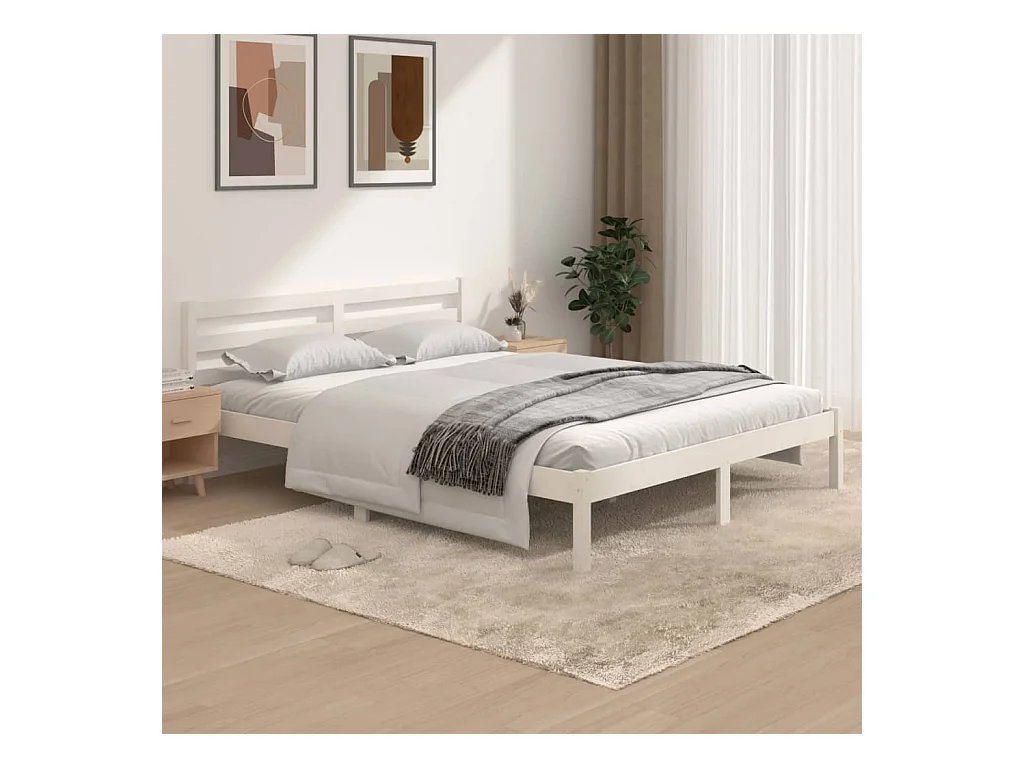 Cadre de lit sans matelas blanc 150x200 cm bois de pin massif