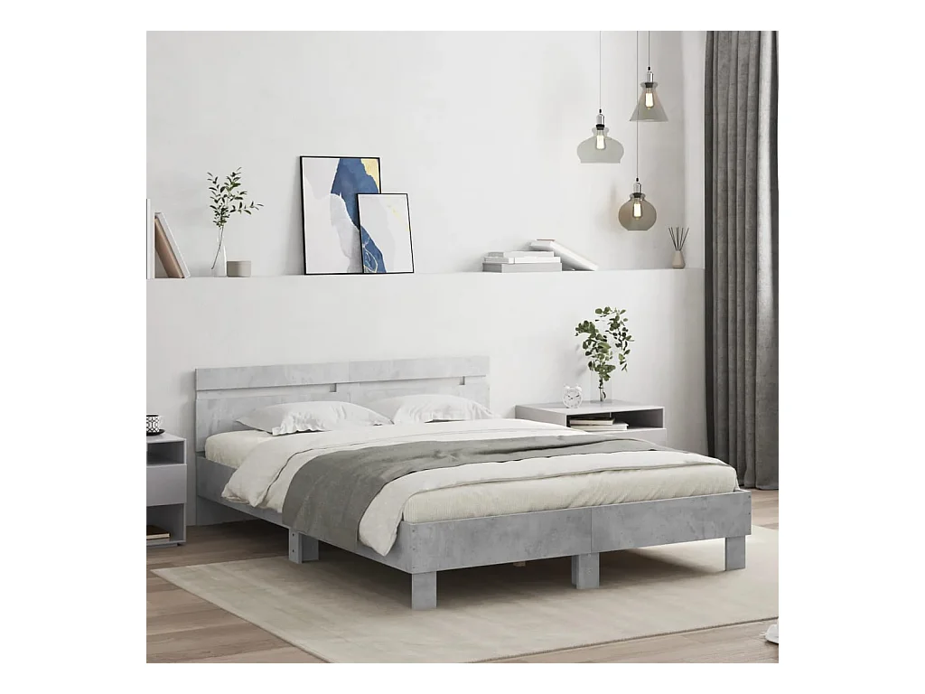 Cadre de lit sans matelas gris béton 150x200 cm bois ingénierie
