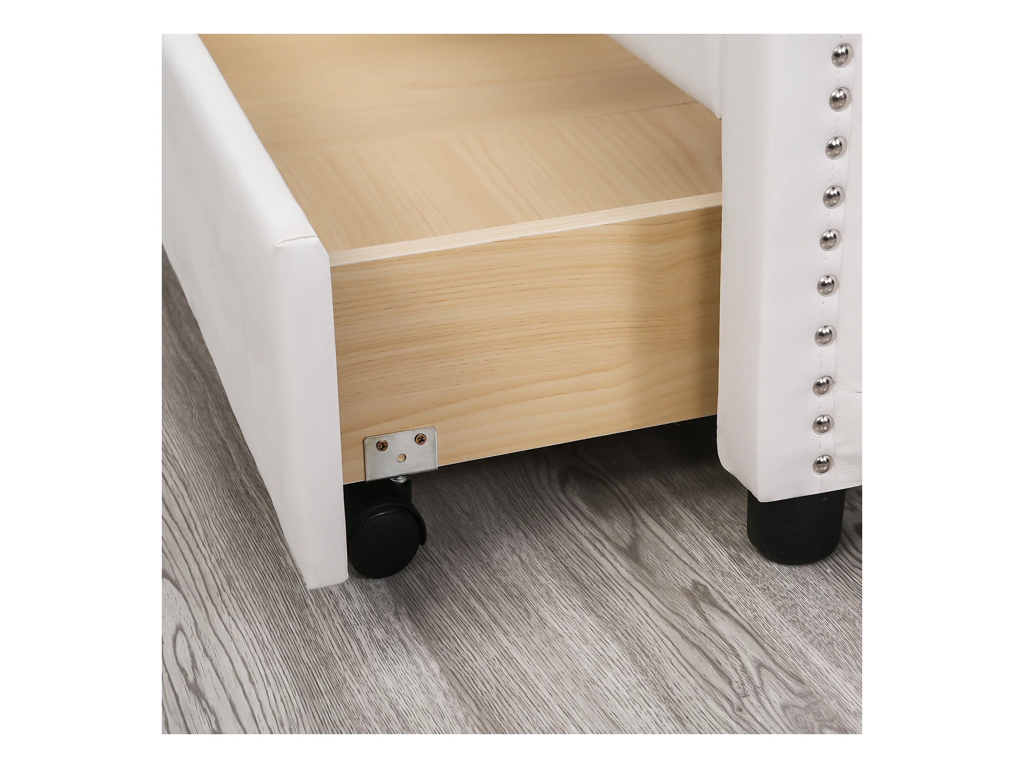 Lit 160x200 avec 2 tiroirs, LED et tête de lit avec clous décoratifs, PU blanc (212.5x166x100 cm)