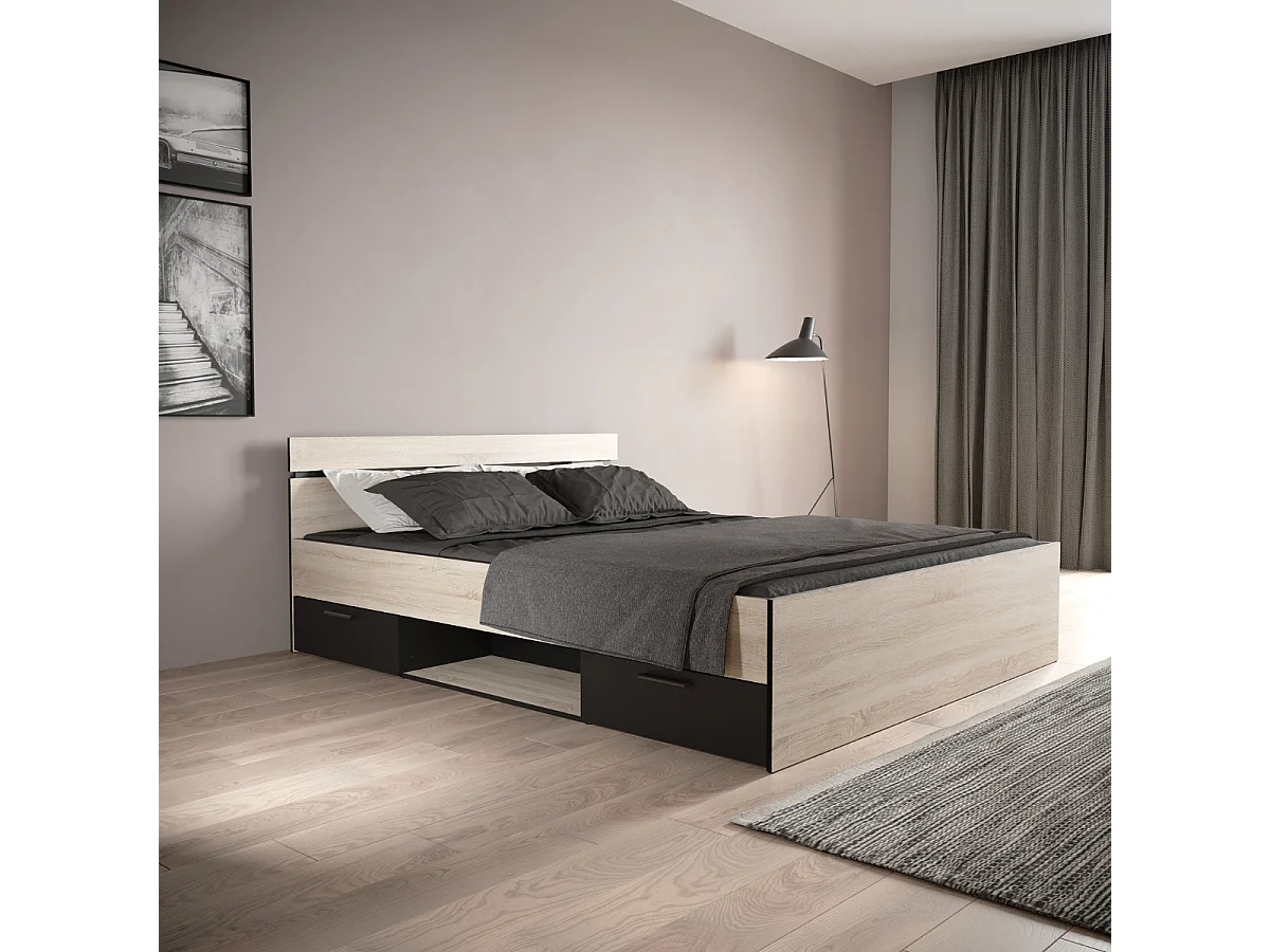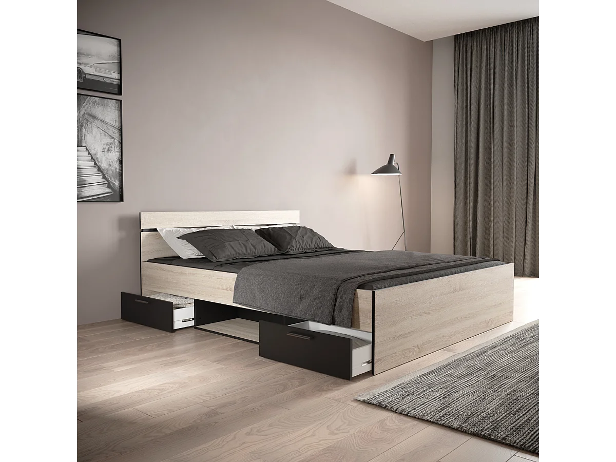 Lit 160x200 cm 2 tiroirs et 1 niche L164,5 cm - MICHIGAN