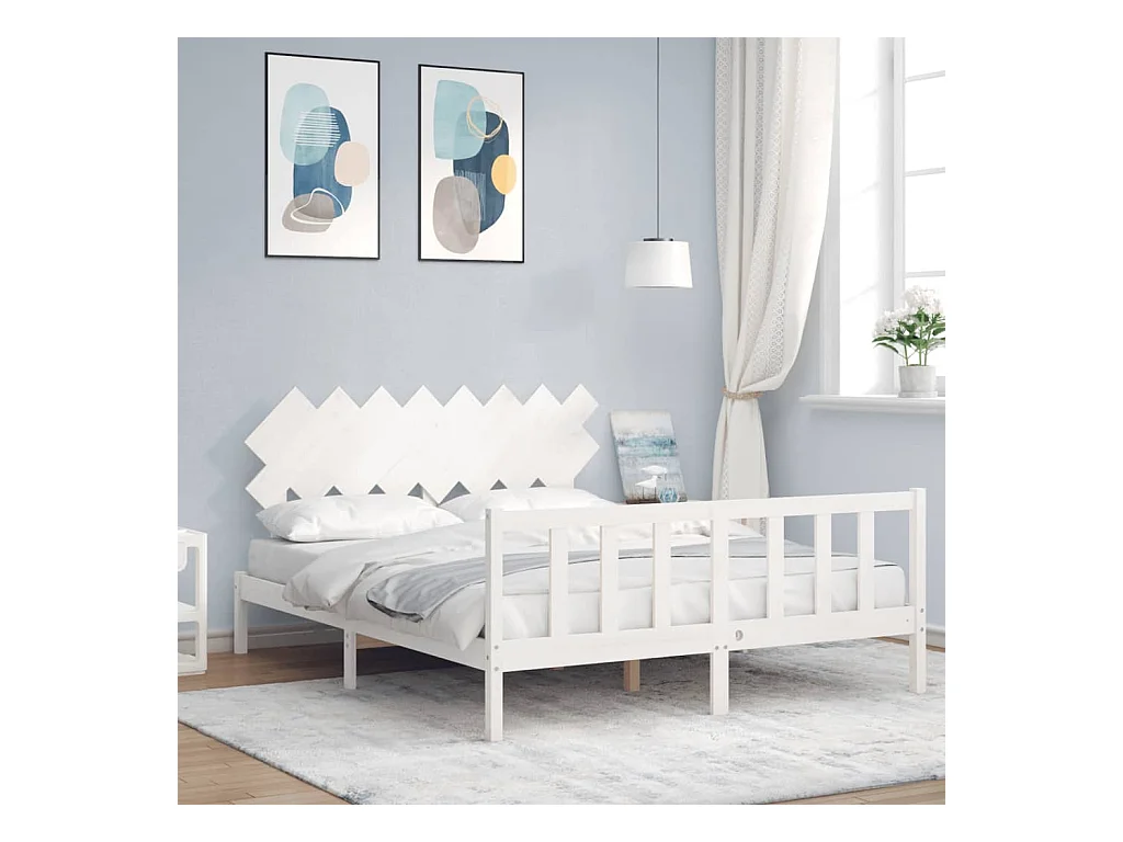 Lit-160x200 cm avec tête de lit blanc bois massif EGGB85808