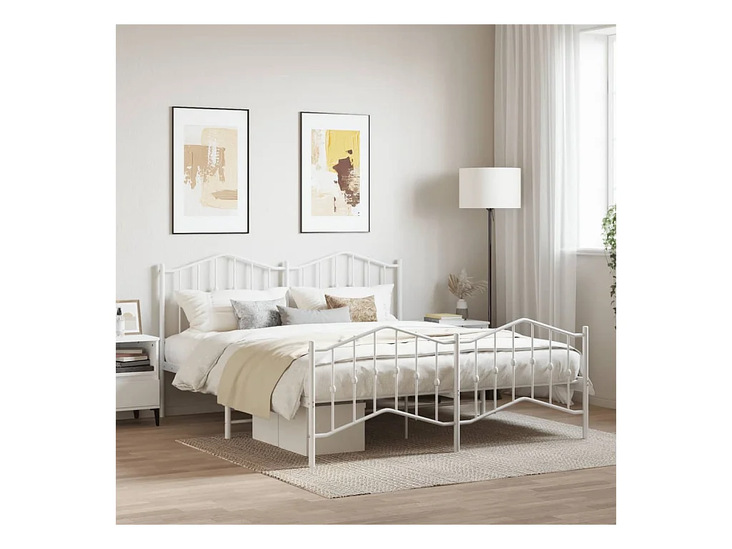 Lit double métal + tête de lit/pied de lit blanc 160x200cm FR93160