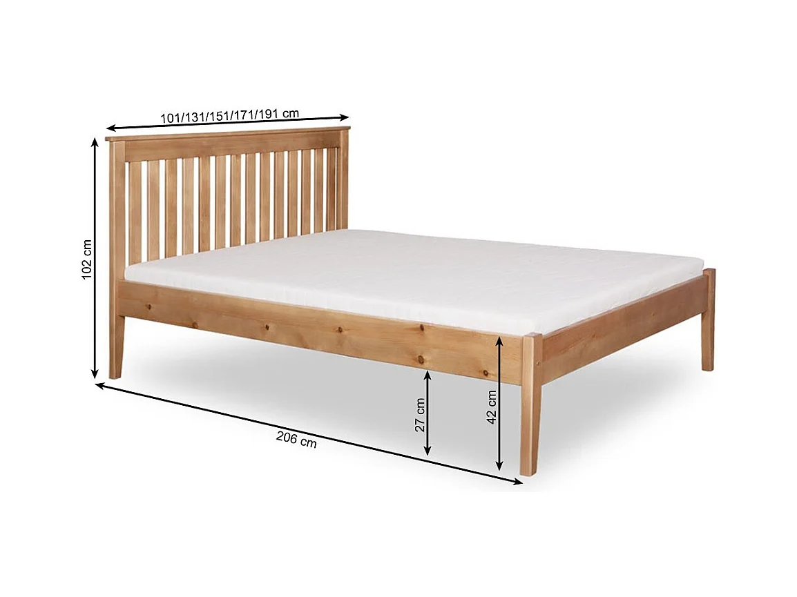 Lit double 160x200 en bois massif avec tête de lit, sommier, GRES, couleur chêne MD24