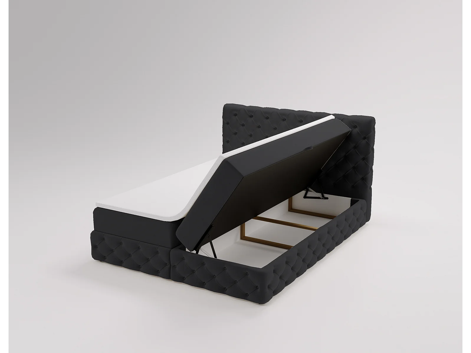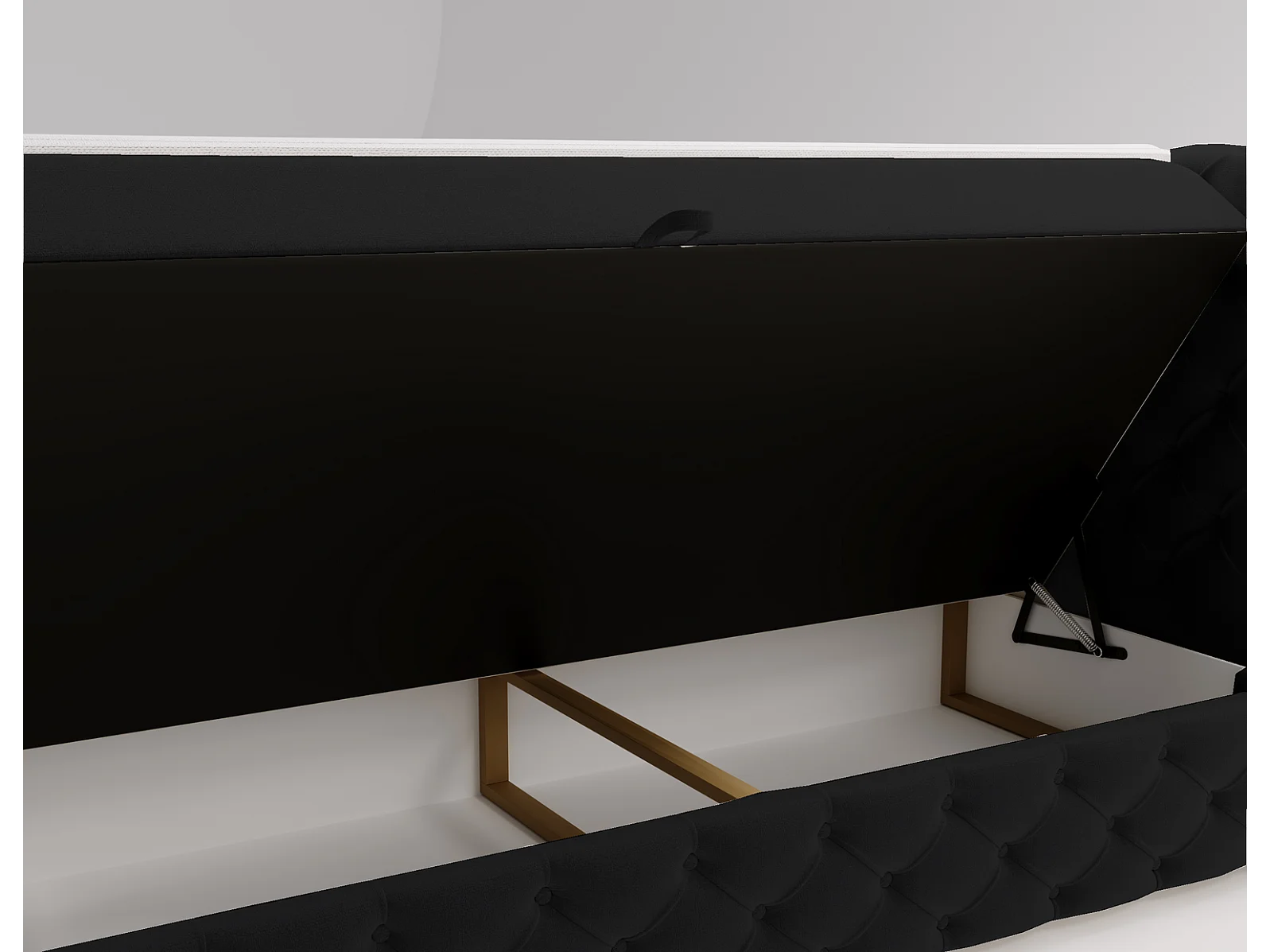 Lit 180x200 avec Rangement Royal - Matelas Ressorts ensachés, Surmatelas - Lit Noir (Royal Velvet 22)