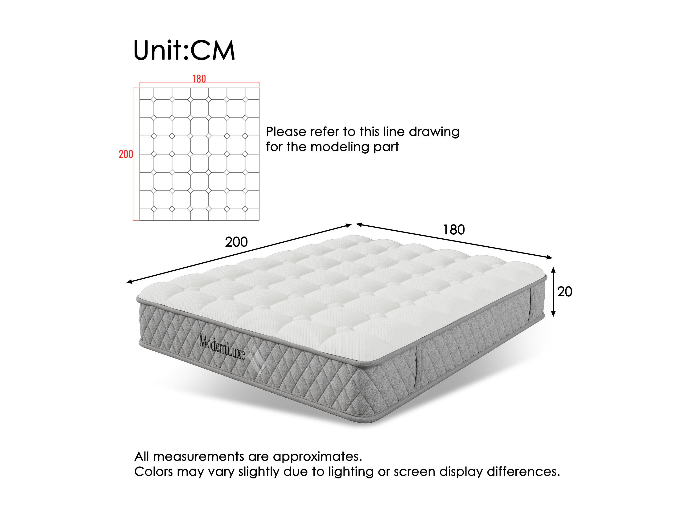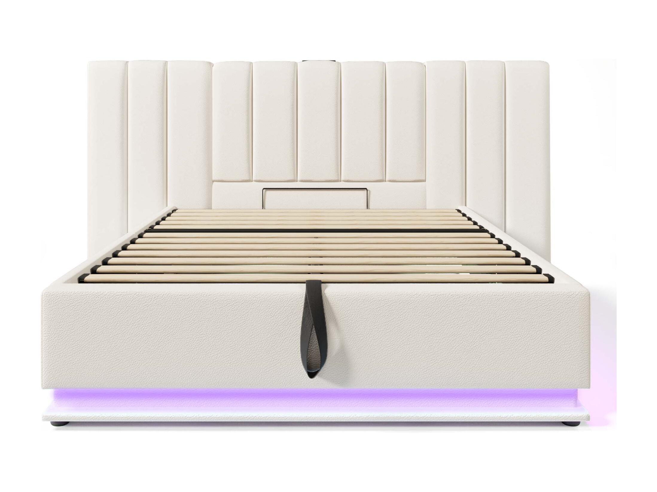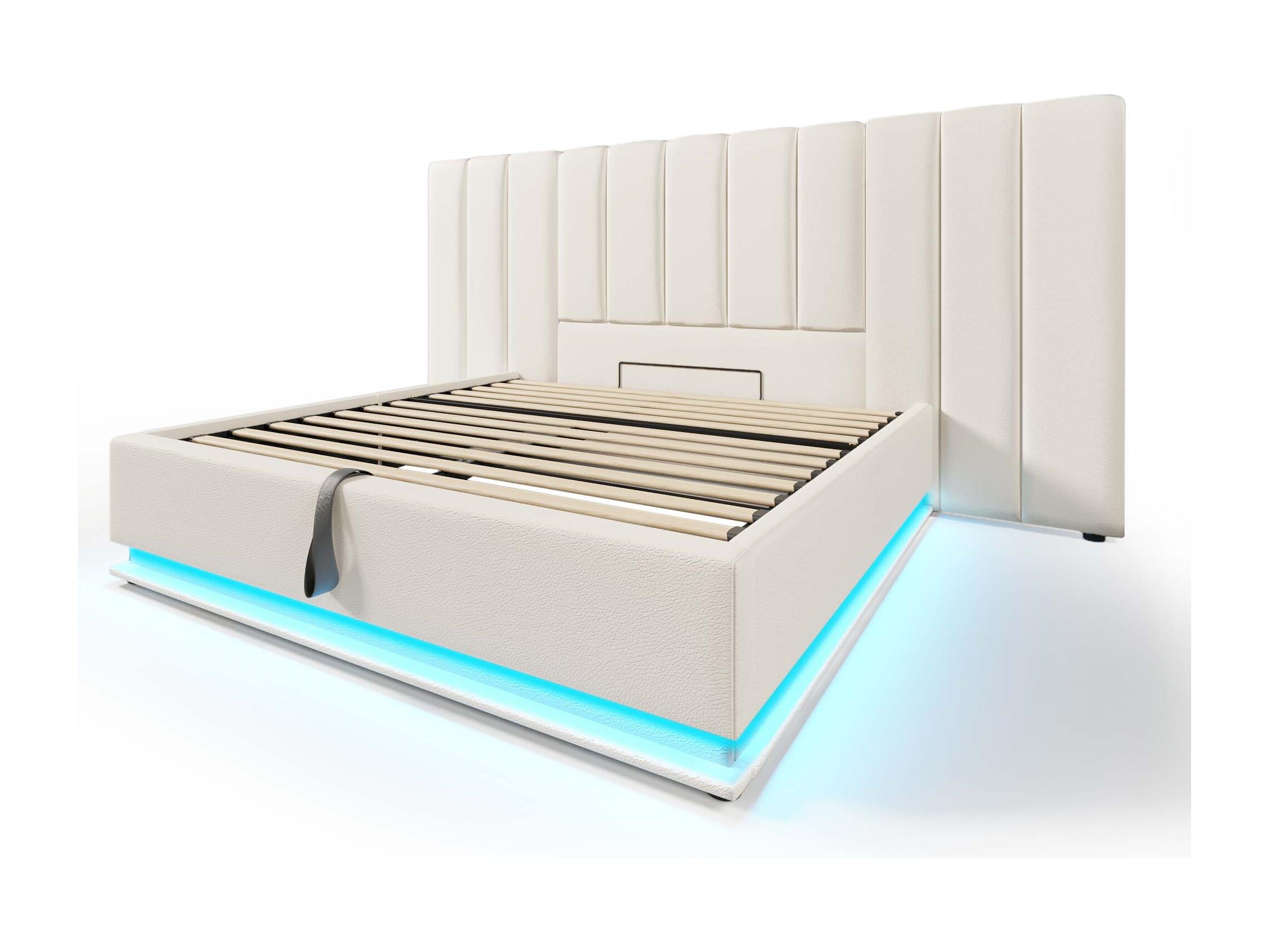 Lit 180x200 cm avec rangement, LED et chargement USB-C, cadre en PU blanc, avec matelas (180x200 cm)