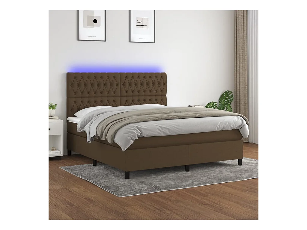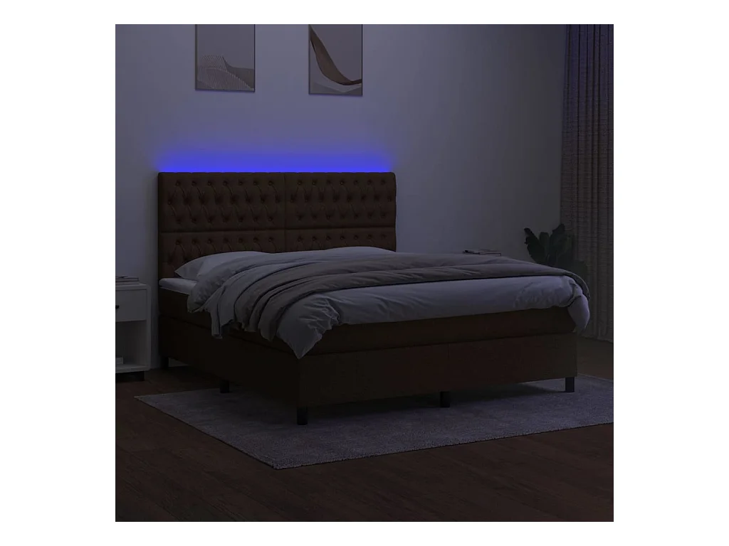 Ensemble complet boxspring - 180x200 cm + sommier à lattes de lit+ matelas + LED Marron foncé SRGW68016
