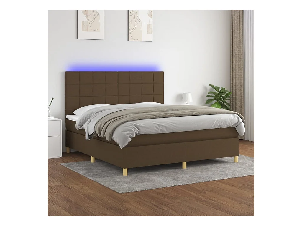 Ensemble complet boxspring - 180x200 cm + sommier à lattes de lit+ matelas + LED Marron foncé SRGW78204
