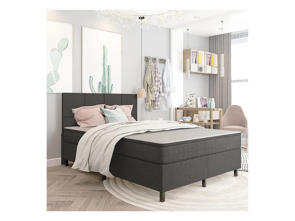 Ensemble complet boxspring - 180x200 cm + Sommier tapissier Gris foncé Tissu 180x200 cm WEW22861