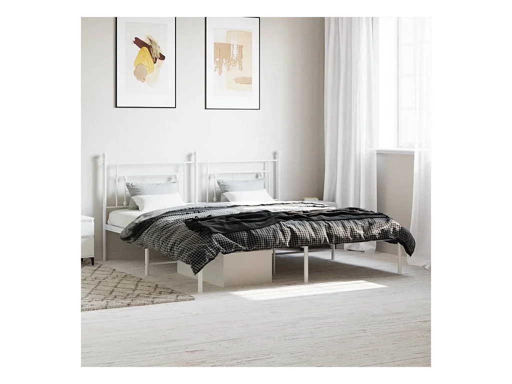 Lit-183x213 cm métal + tête de lit/pied de lit blanc HOQW41849