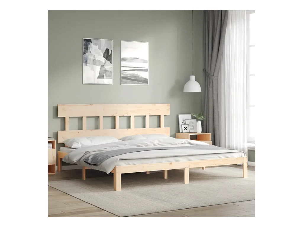 Lit-200x200 cm avec tête de lit bois massif EGGB24584