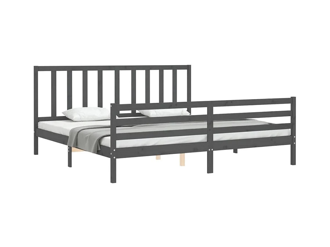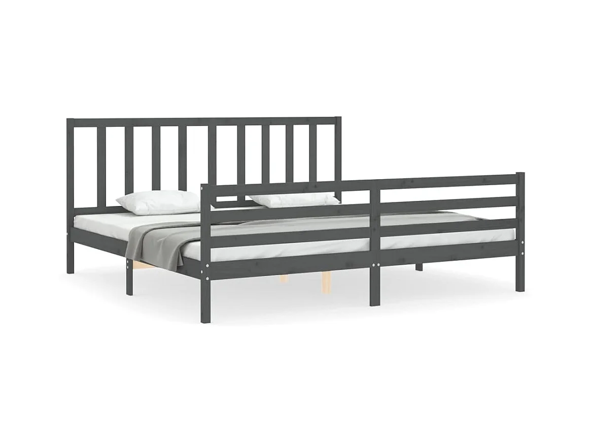 Lit-200x200 cm avec tête de lit gris bois massif EGGB81400