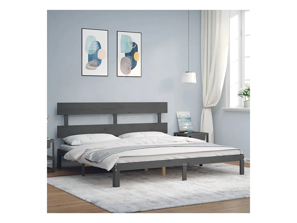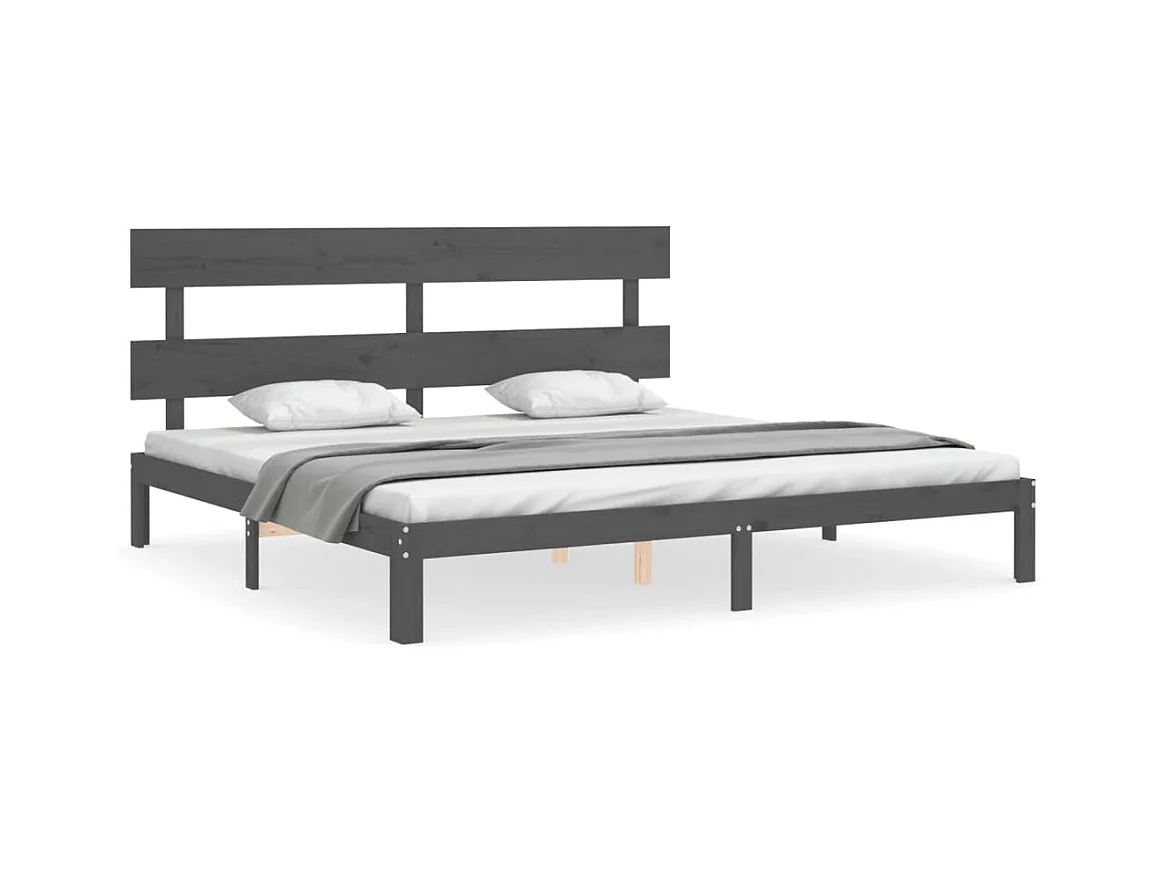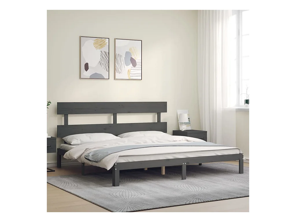 Lit-200x200 cm avec tête de lit gris bois massif EGGB58832