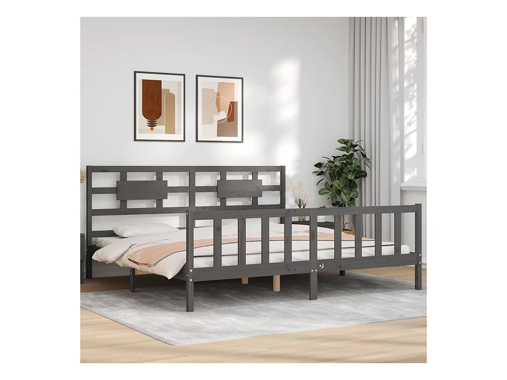 Lit-200x200 cm avec tête de lit gris bois massif EGGB64641
