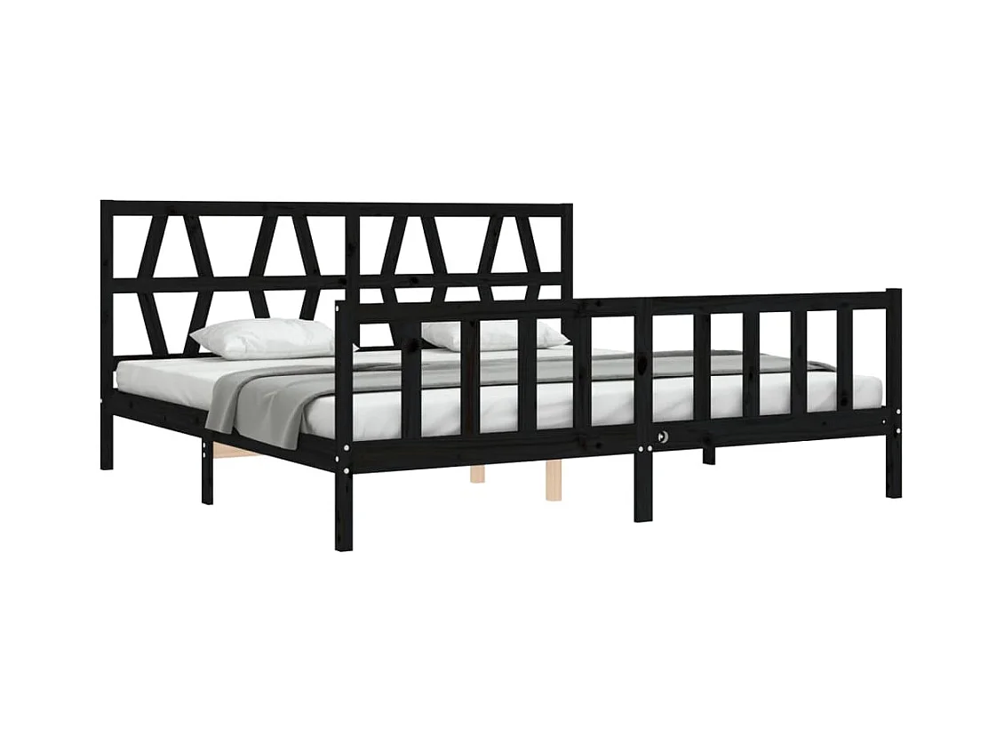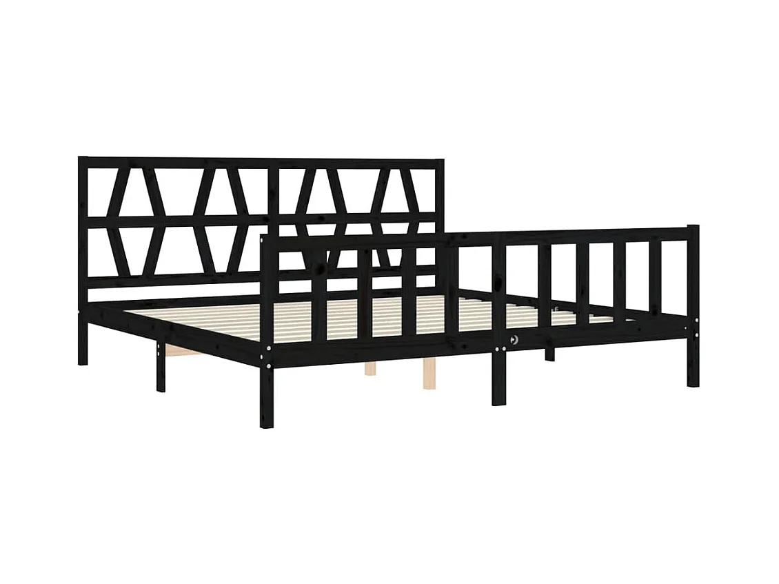 Lit-200x200 cm avec tête de lit noir bois massif EGGB19410