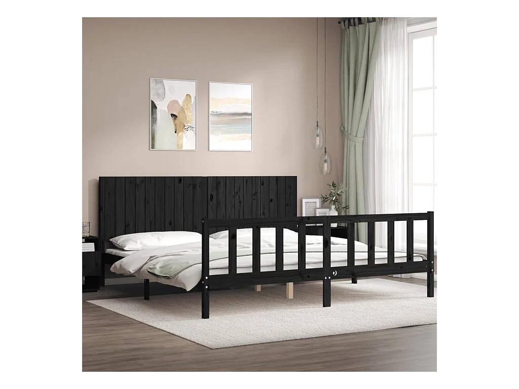 Lit-200x200 cm avec tête de lit noir bois massif EGGB70138