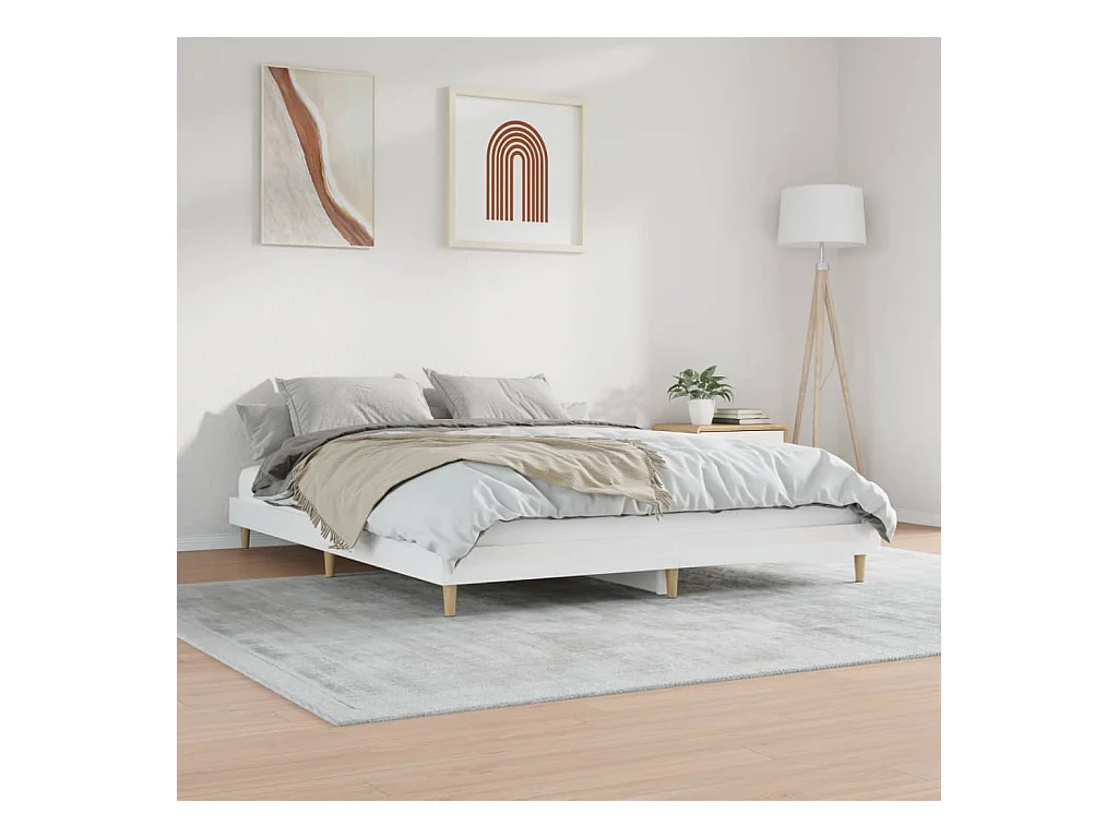 Lit-200x200 cm blanc brillant bois d'ingénierie EGGB91151