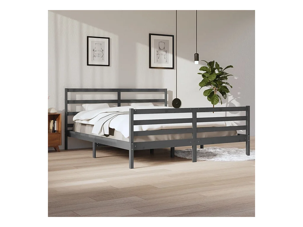 Lit-200x200 cm Gris Bois de pin massif EGGB81406