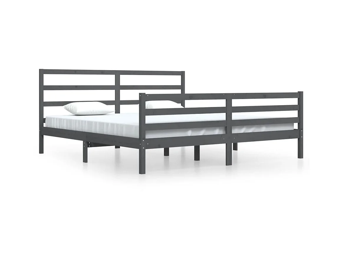 Lit-200x200 cm Gris Bois de pin massif EGGB15963