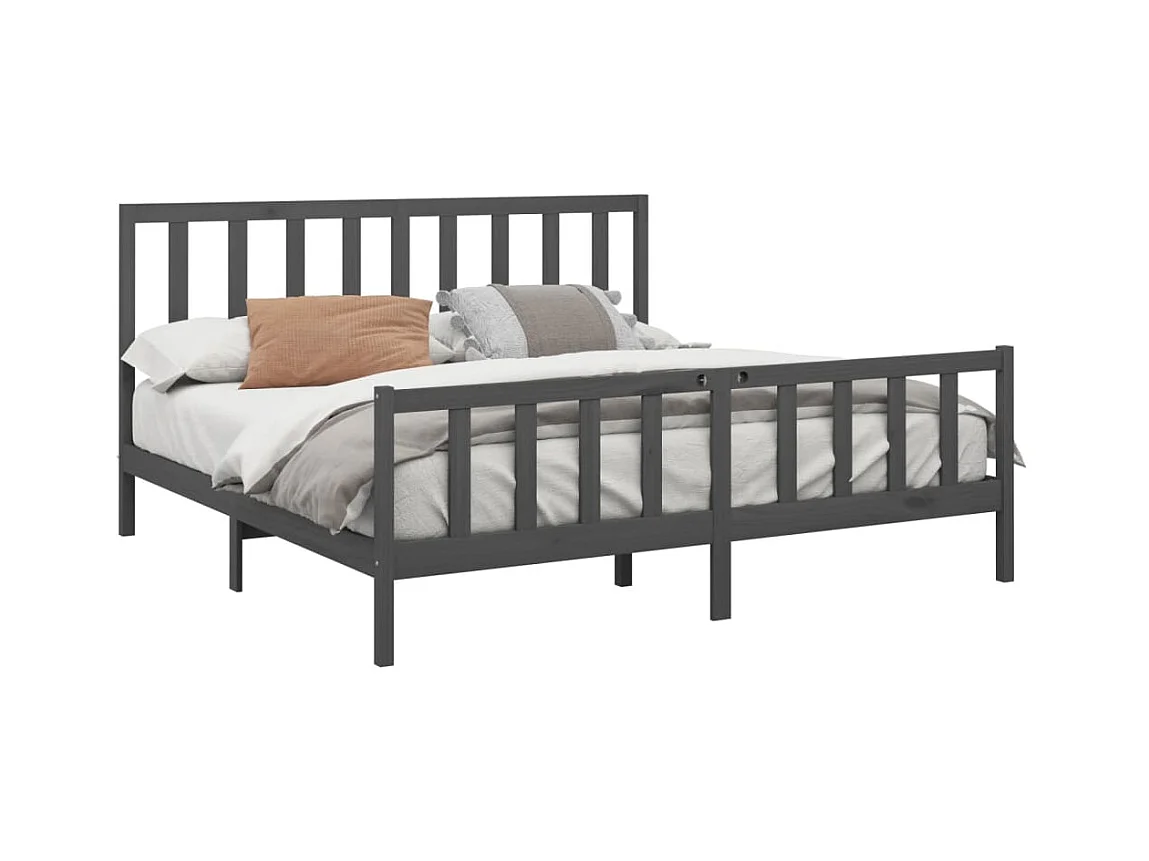 Lit-200x200 cm Gris Bois de pin massif EGGB97472