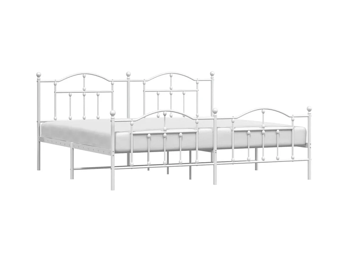 Lit double métal + tête de lit/pied de lit blanc 200x200cm FR87671