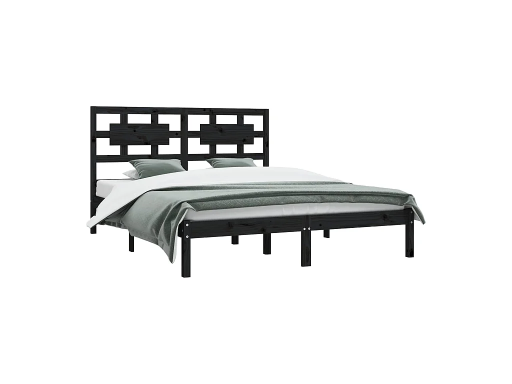 Lit-200x200 cm Noir Bois de pin massif EGGB49394