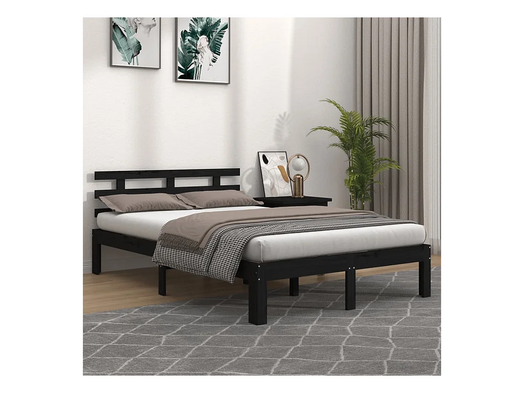 Lit-200x200 cm Noir Bois massif EGGB71514