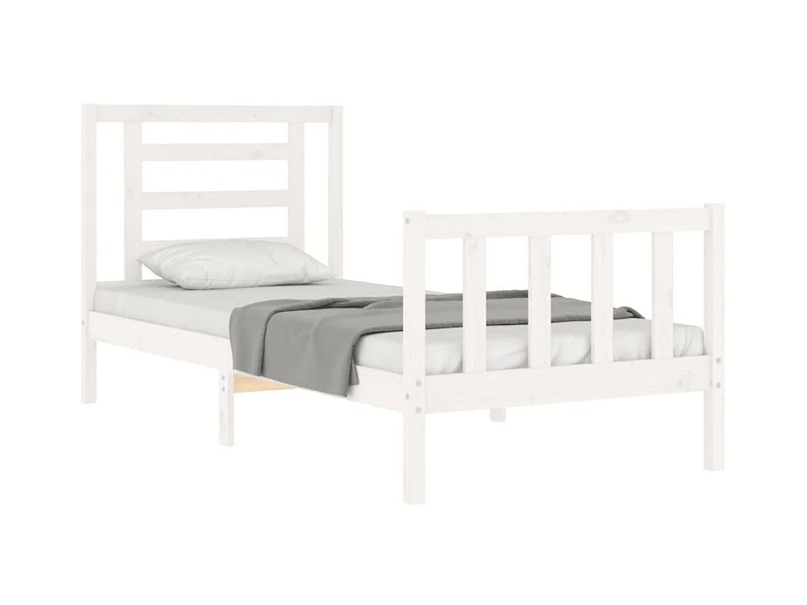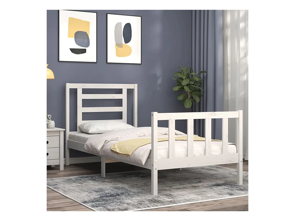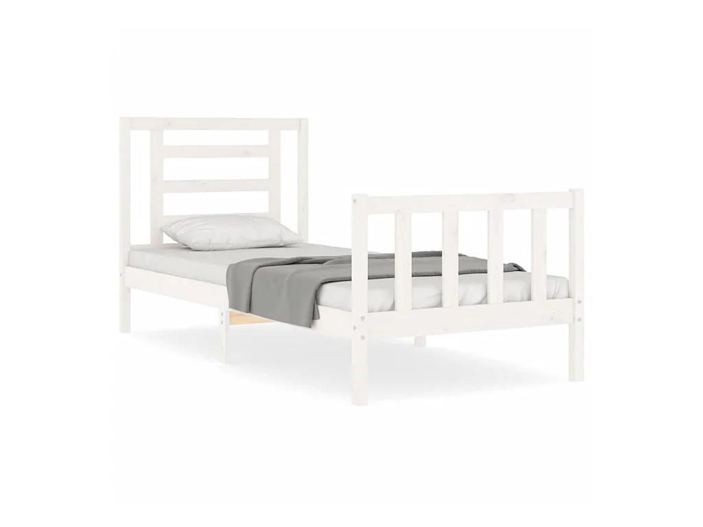 Lit-75x190 cm avec tête de lit blanc petit simple bois massif EGGB82009