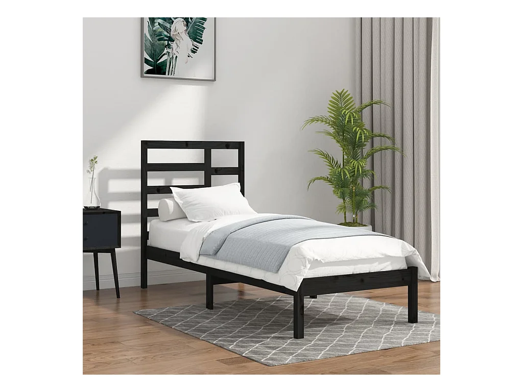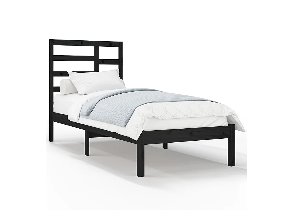 Lit-75x190 cm Noir Bois de pin massif Petit simple EGGB64120