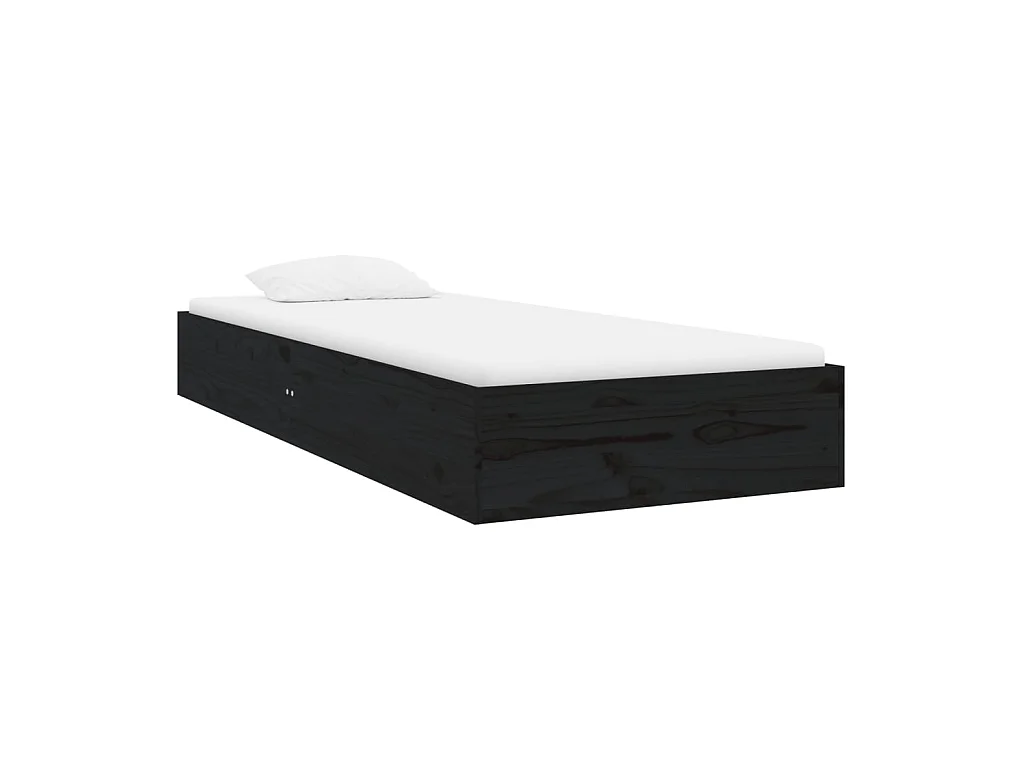Lit-75x190 cm Noir Bois massif Petit simple EGGB53792
