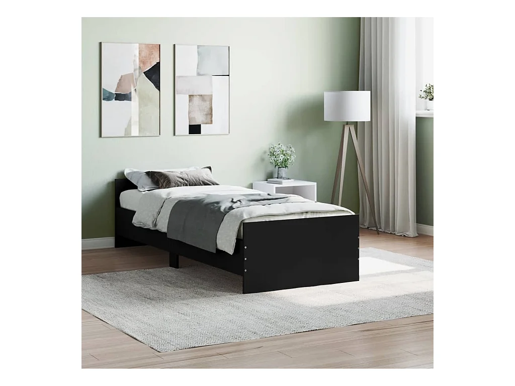 Lit-75x190 cm noir petit simple bois d'ingénierie EGGB24649