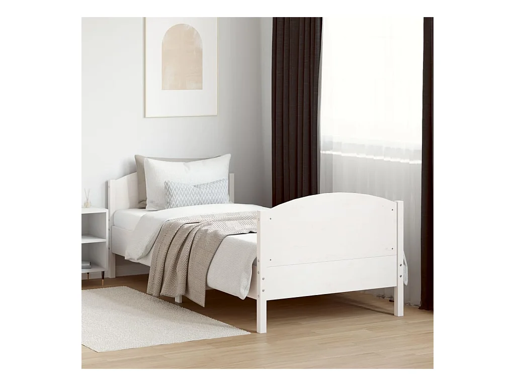 Lit-75x190 cm + tête de lit blanc bois de pin massif HOQW33339