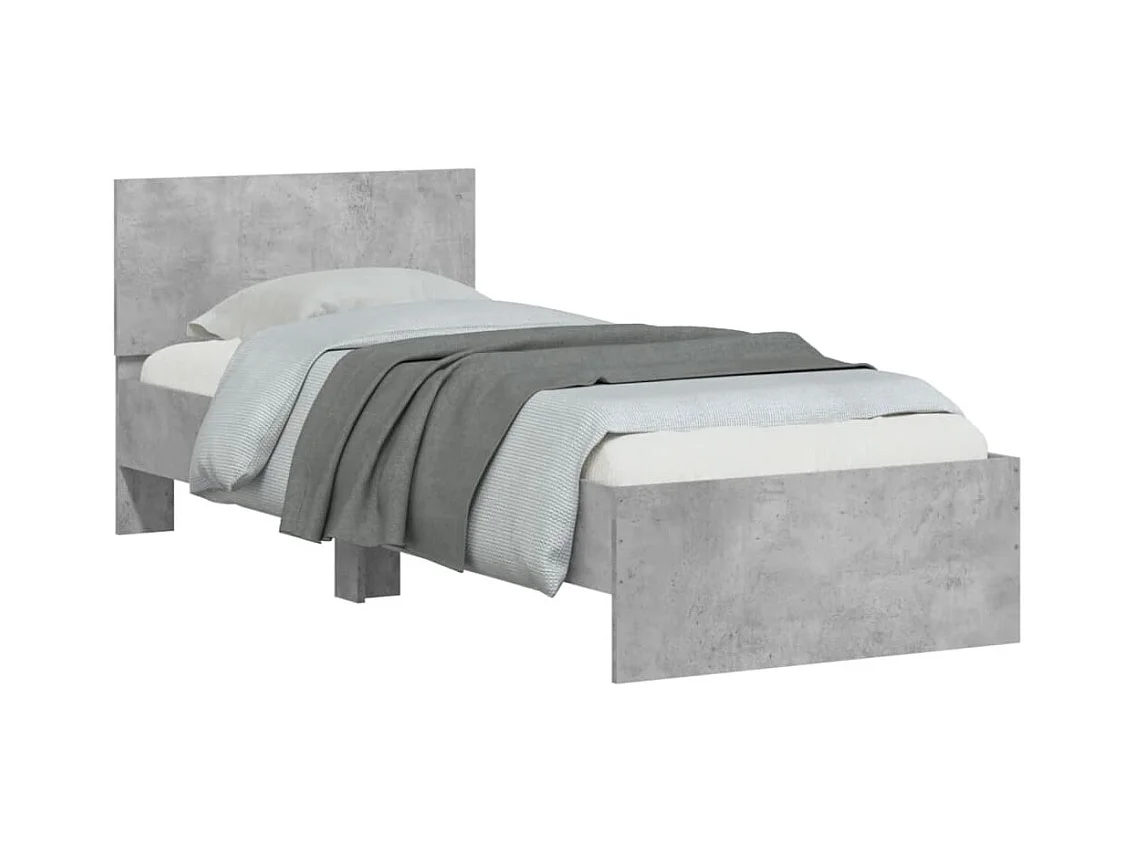 Lit-75x190 cm tête de lit et pied de lit gris béton EGGB84138