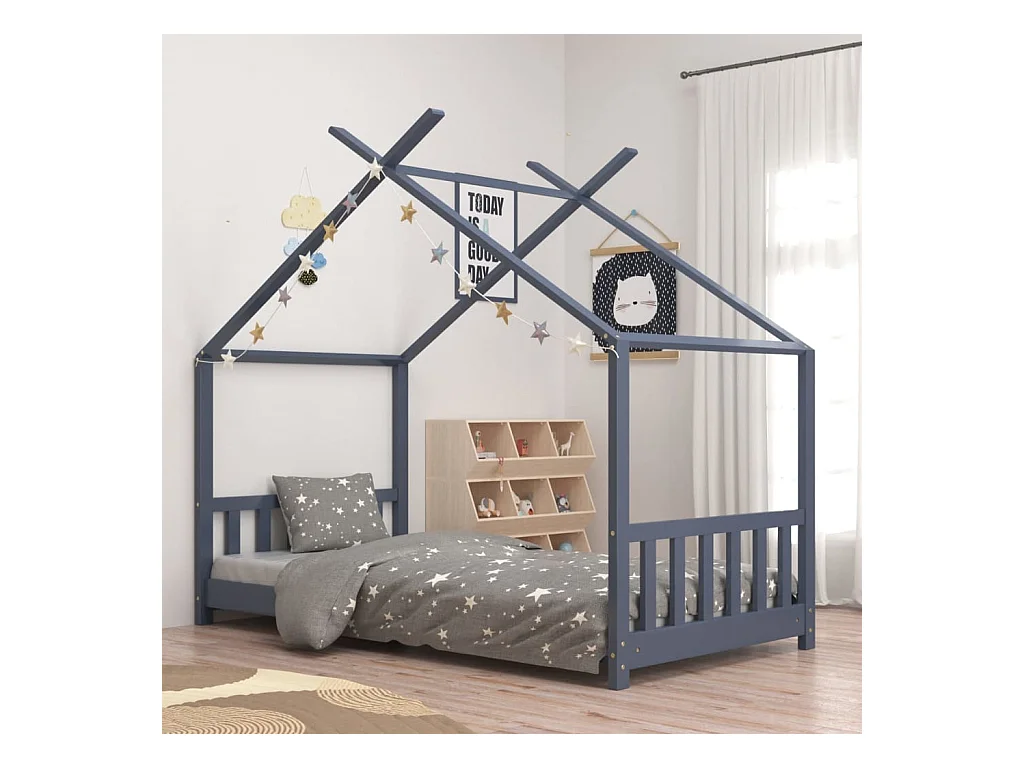 Lit-80x160 cm d'enfant Gris Bois de pin massif EGGB24624