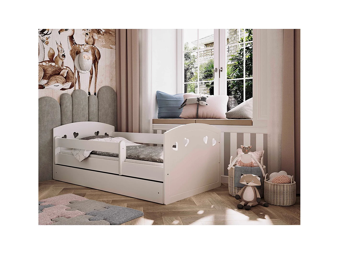 Lit enfant avec tiroirs de rangement bois blanc 80x160 petit coeur rose Belly