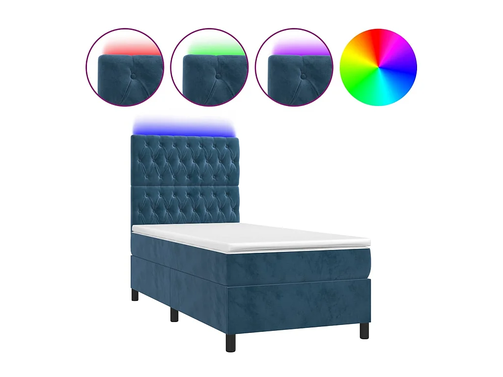 Ensemble complet boxspring - 80x200 cm + sommier à lattes de lit + matelas + LED Bleu foncé SRGW38203