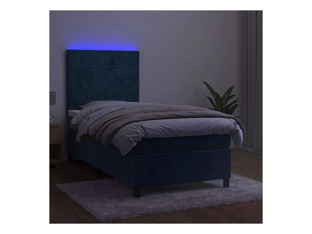 Ensemble complet boxspring - 80x200 cm + sommier à lattes de lit + matelas + LED Bleu foncé SRGW38203