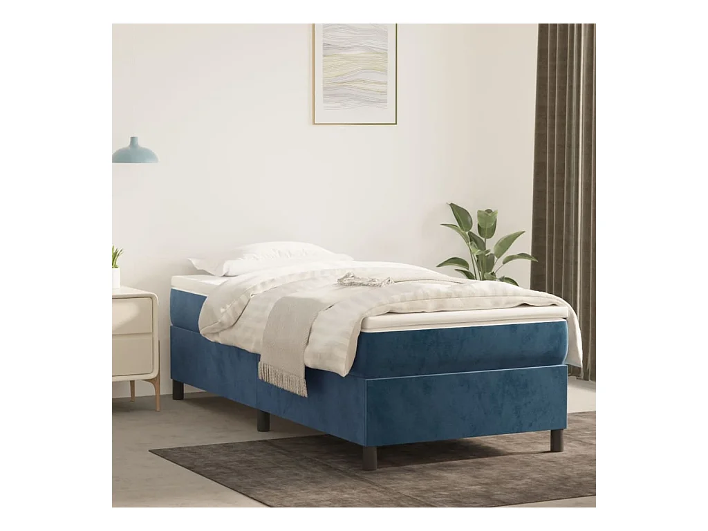 Ensemble complet boxspring - 80x200 cm + sommier tapissier + matelas Bleu foncé Velours SRGW28656