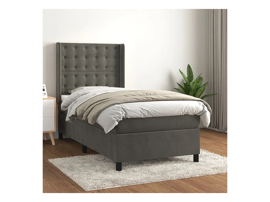 Ensemble complet boxspring - 80x200 cm + sommier tapissier + matelas Gris foncé Velours SRGW59429