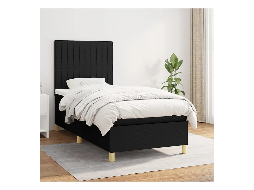 Ensemble complet boxspring - 80x200 cm + sommier tapissier + matelas Noir Tissu SRGW95592