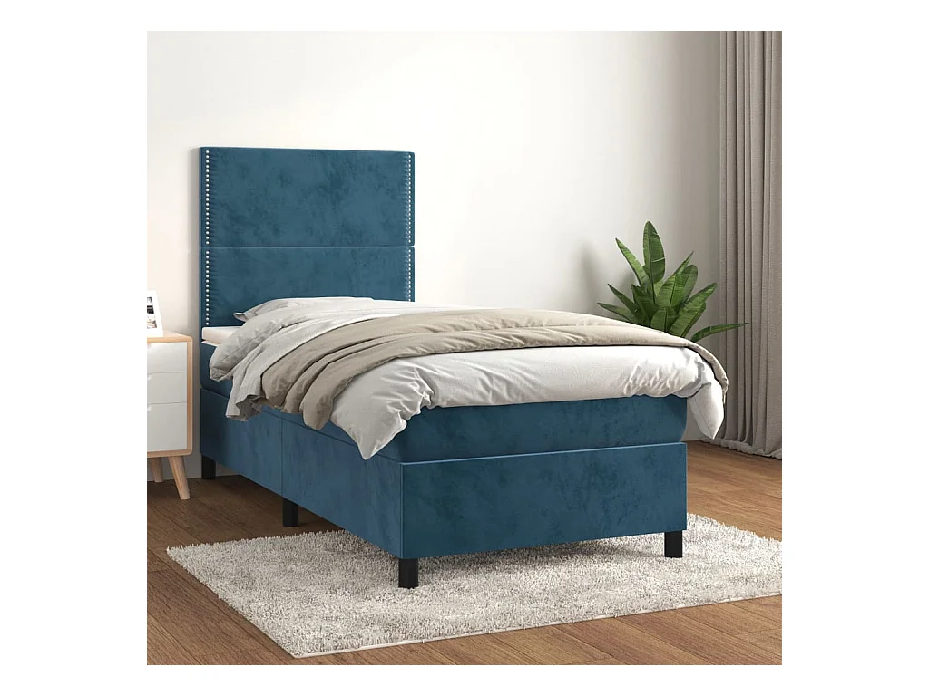 Ensemble complet boxspring - 80x200 cm + sommier tapissier + matelas Bleu foncé Velours SRGW90977