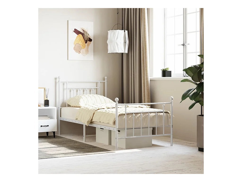 Lit-80x200 cm métal avec tête de lit/pied de lit blanc EGGB92884