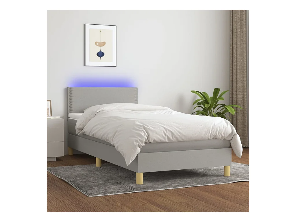 Ensemble complet boxspring - 90x190 cm + sommier à lattes de lit + matelas + LED Gris clair SRGW92236