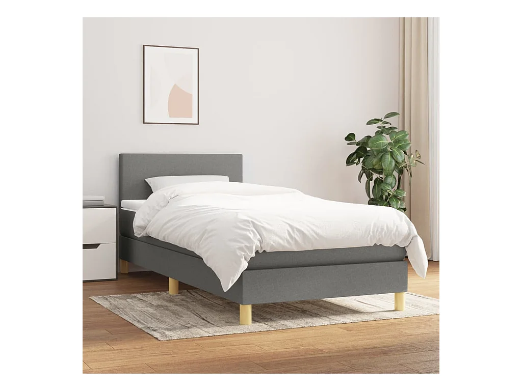Ensemble complet boxspring - 90x190 cm + sommier tapissier + matelas Gris foncé Tissu SRGW90972
